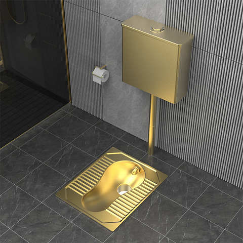 Vente en gros de toilettes squat en acier inoxydable de luxe en or personnalisées au design moderne pour hôtels et centres commerciaux Salles de bain
